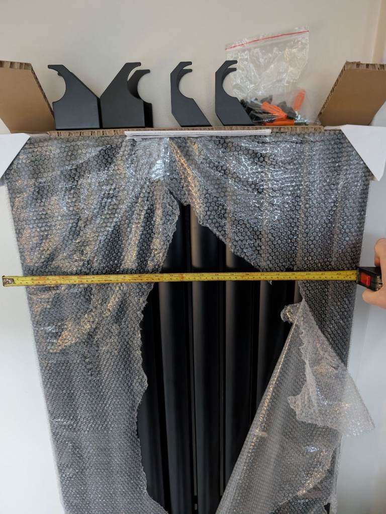 Brand new vertical radiator in black. Comes with walls brackets and feet if being put on a stud wall for extra support.