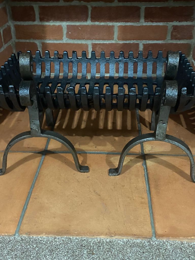 Very heavy lovely fire grate never been used with fire in as good condition .