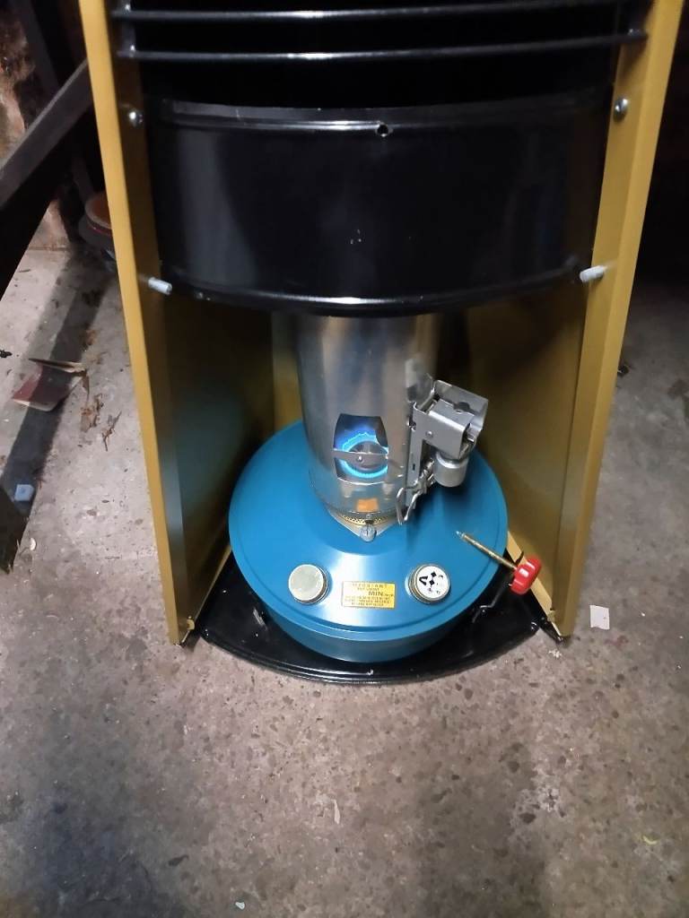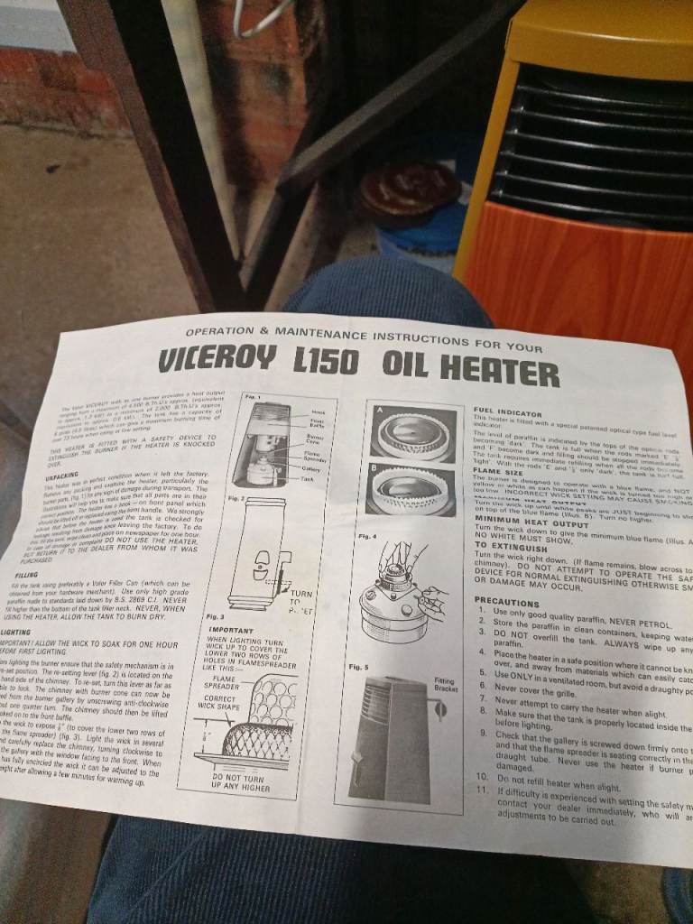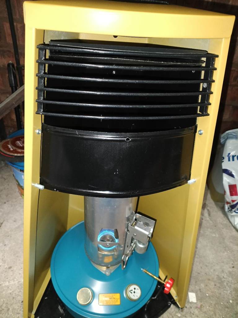 This was a loft find still boxed and in sealed it's 1970s has all the paperwork, all I have done is fuelled it up and tested, I'm the first to use in all this time and it's absolutely good, I bought it to heat my greenhouse but it would be ideal for a room or mancave cheap sauce of heating it has a tank of fuel including first come basis