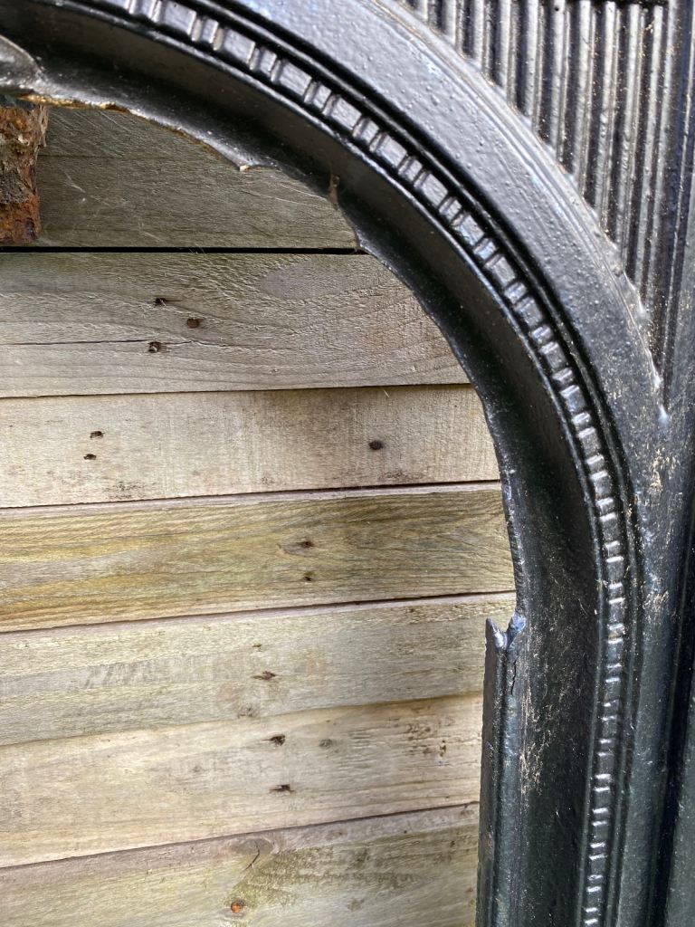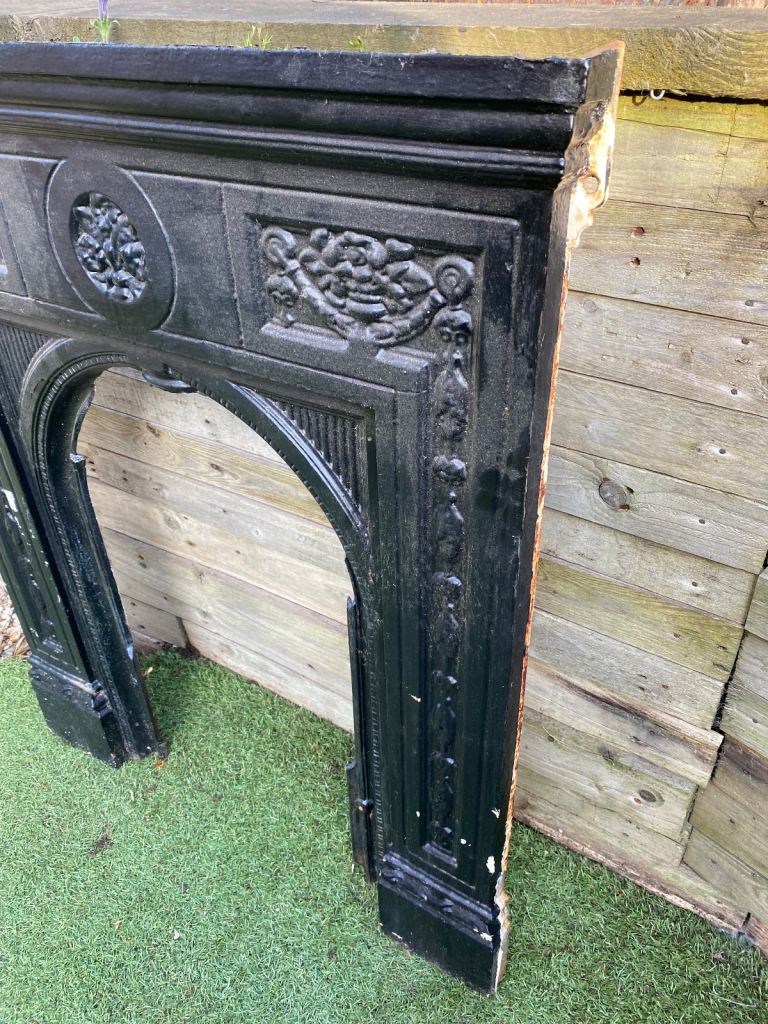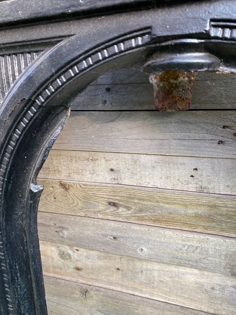 Victorian cast iron fireplace front that is unfortunately damaged (centre of arch has been broken off).