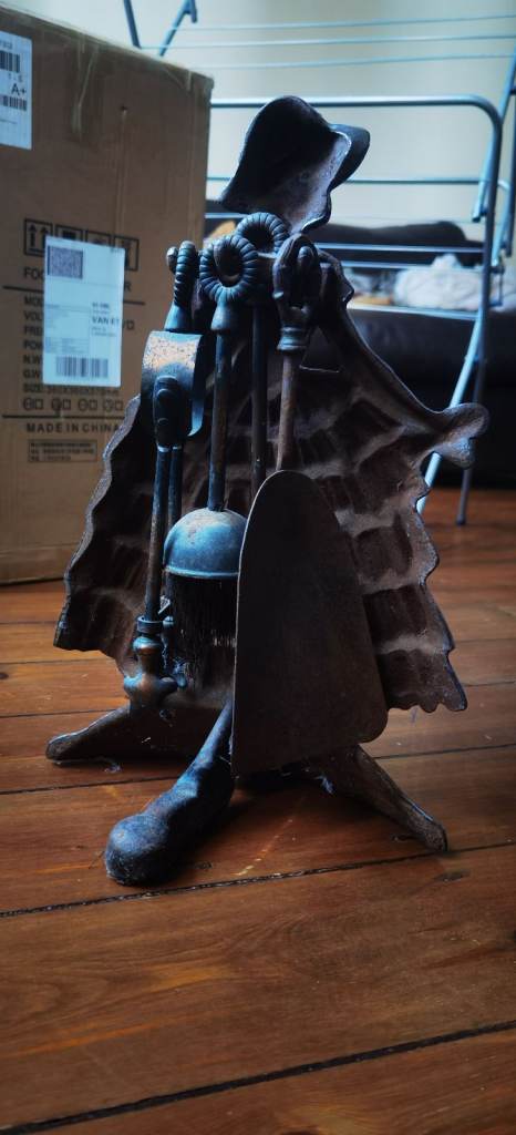 Vintage Art Deco (30s/40s) Enamelled Cast Iron woman Fireside Companion Tool Set Complete -