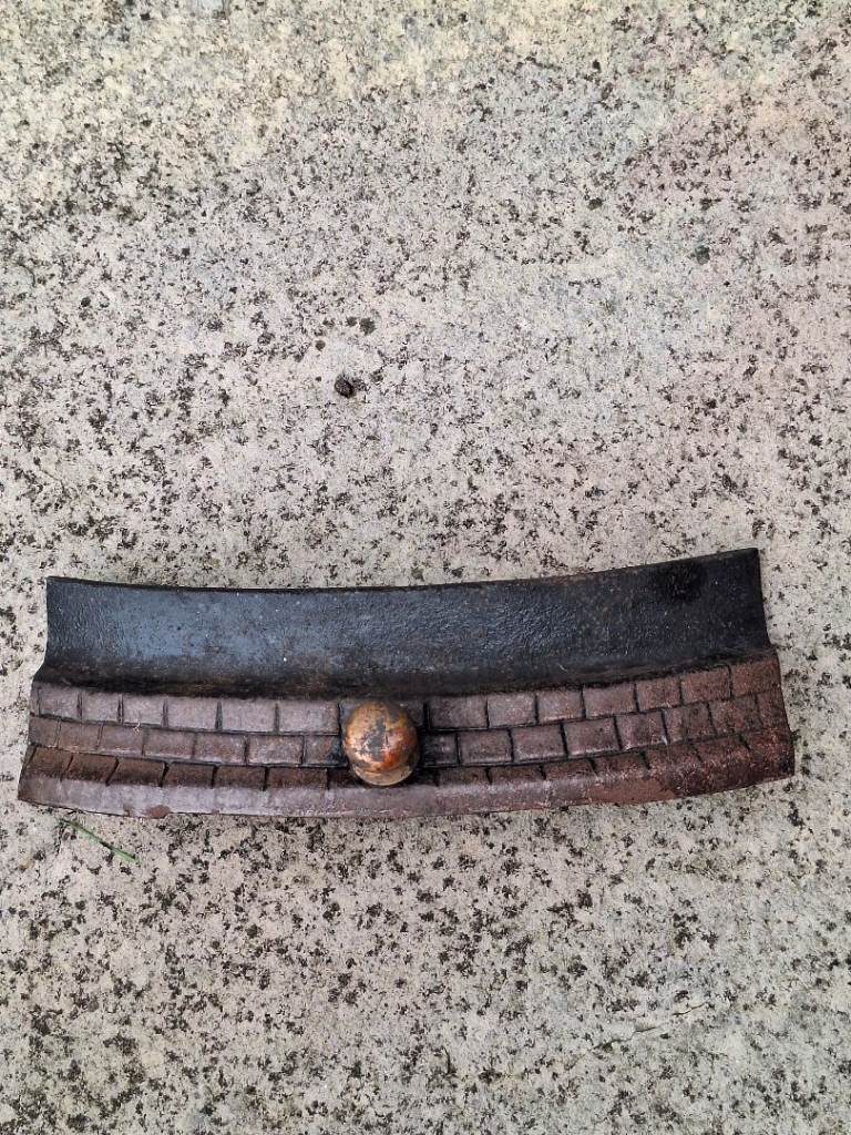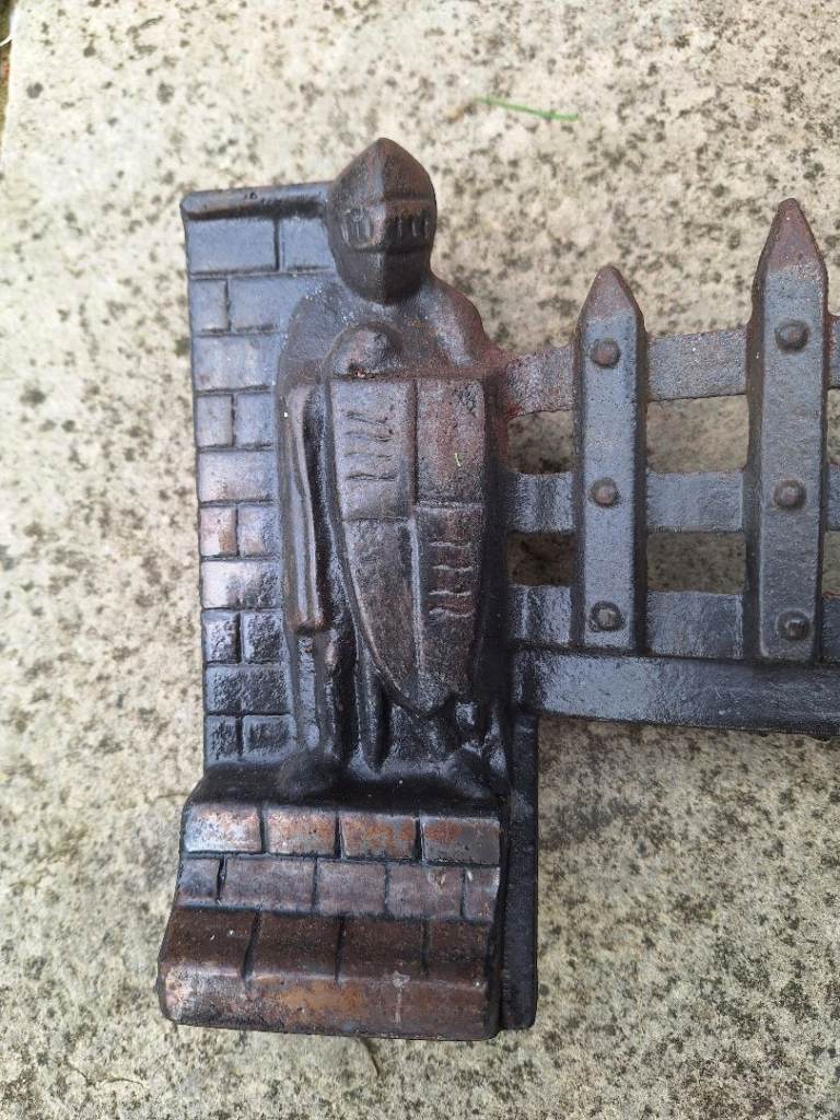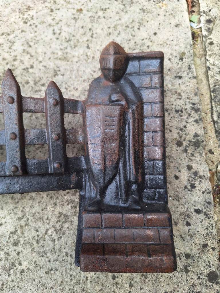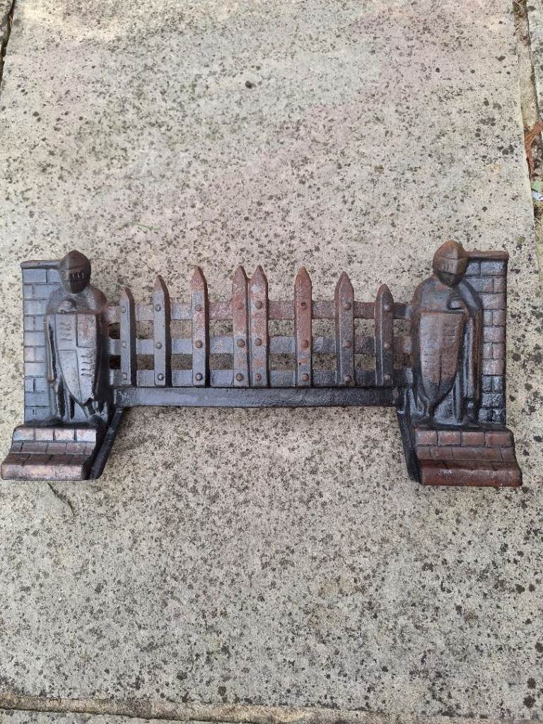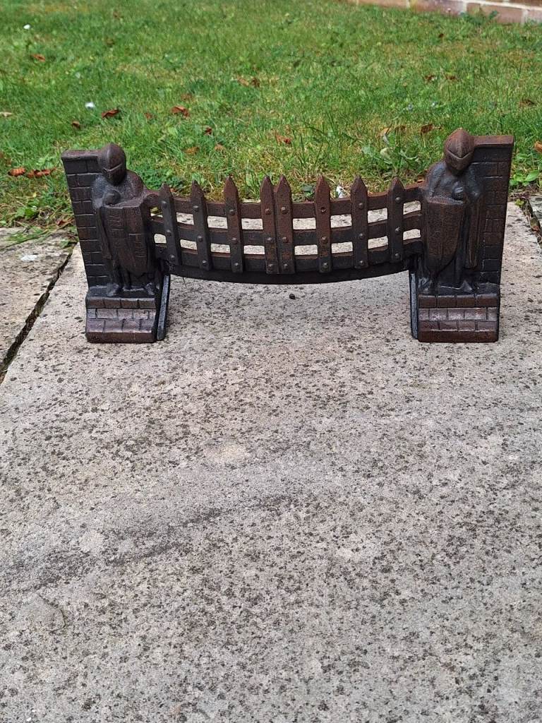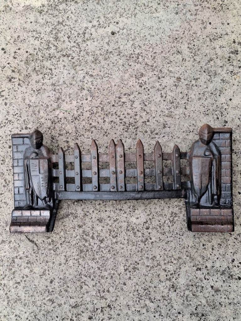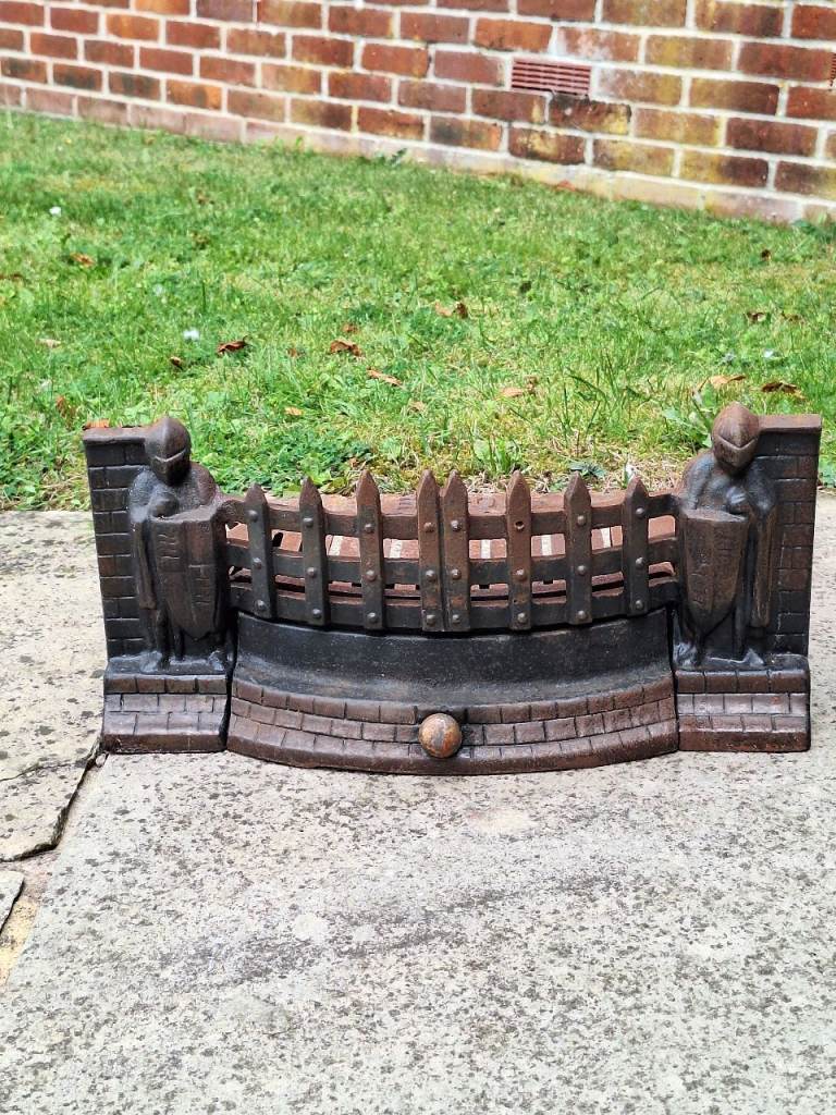 Vintage Exton Cast Iron Crusader Knights Fire Grate with front, fret, grate and dustpan, lovely for an open fire.