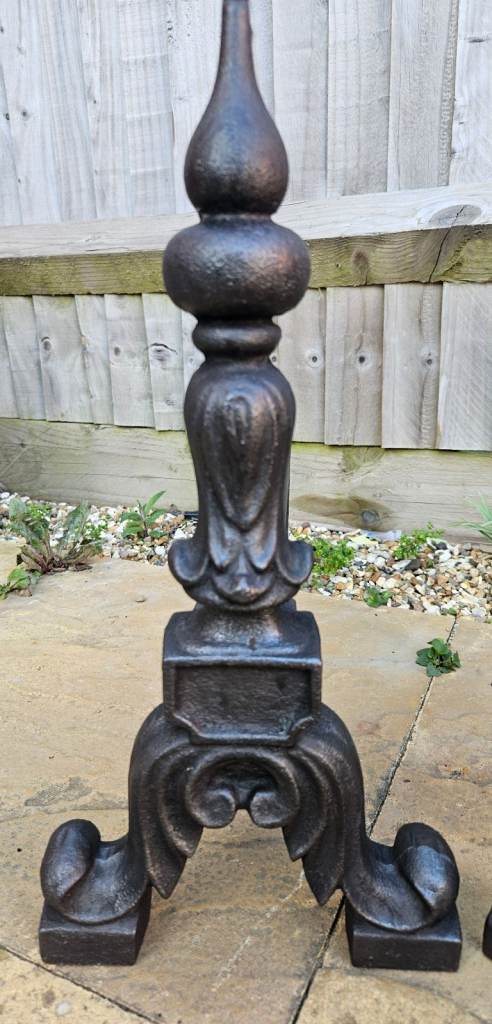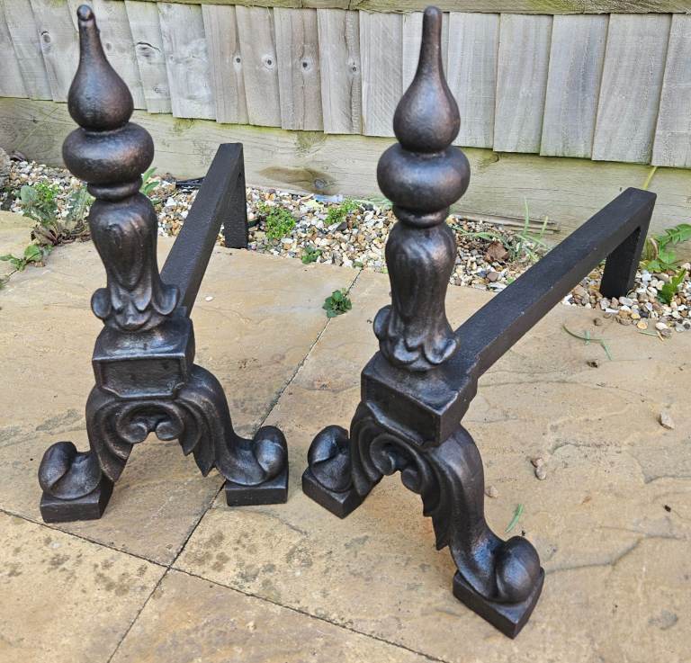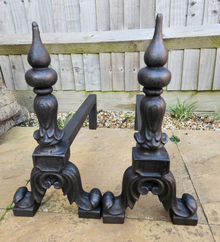 Crafted from durable iron/cast iron, these andirons are not only a visual delight but also a testament to the durability of antique furniture. They blend seamlessly into a range of interior styles, from traditional to contemporary, making them a versatile addition to any home.