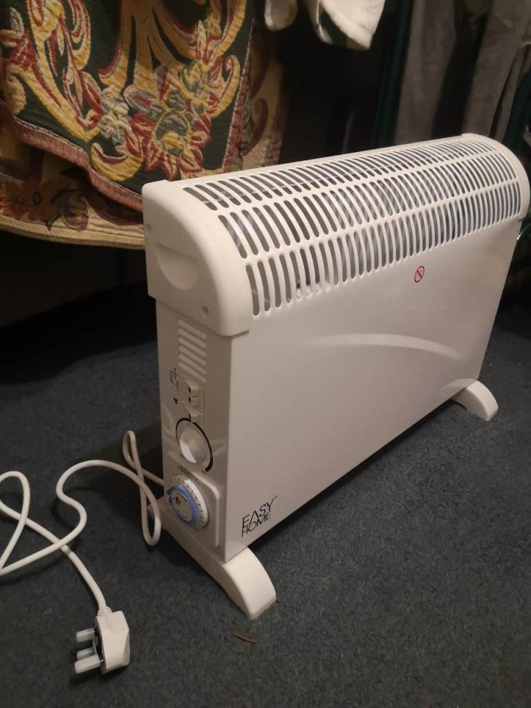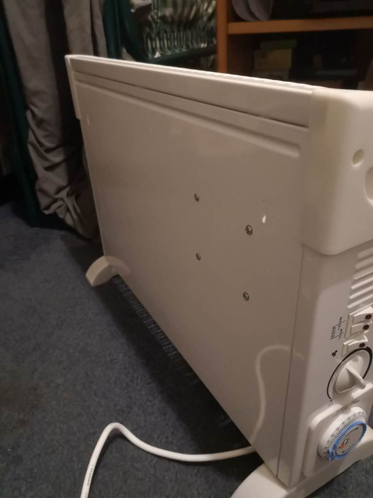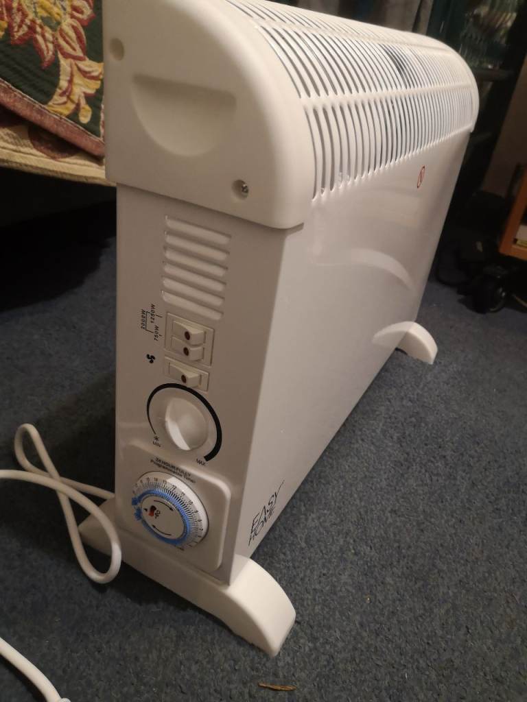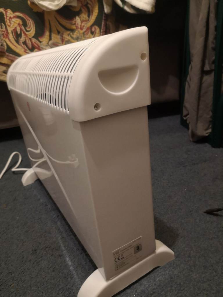 A LOVELY WHITE CONVECTOR HEATER , IT IS FLOOR BASED, IN WORKING ORDER, IT IS ELECTRIC
