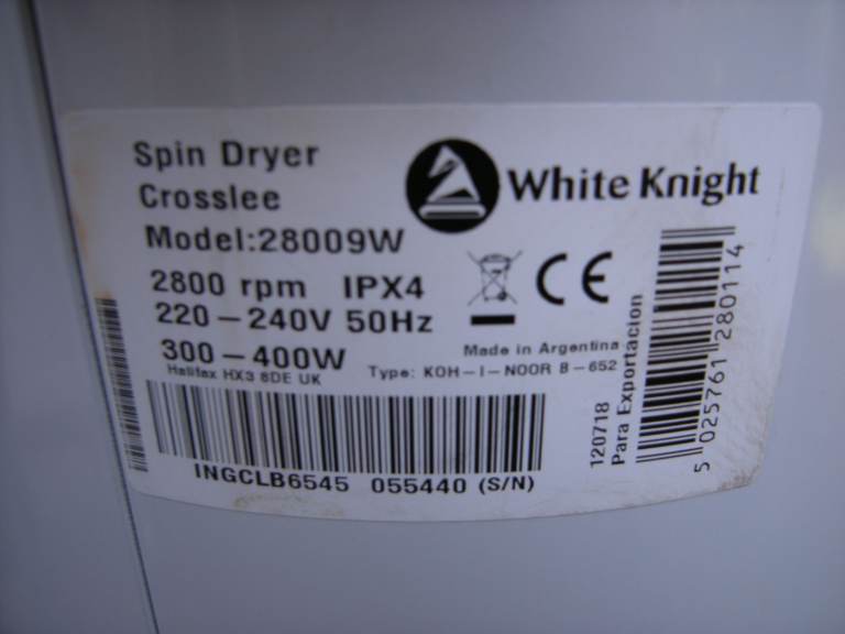 FOR SALE WHITE KNIGHT SPIN DRIER IN GOOD CONDITION.