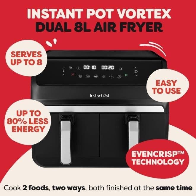 Instant Pot - Vortex Dual Black Air Fryer - Large 8L, Family Size,