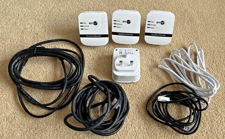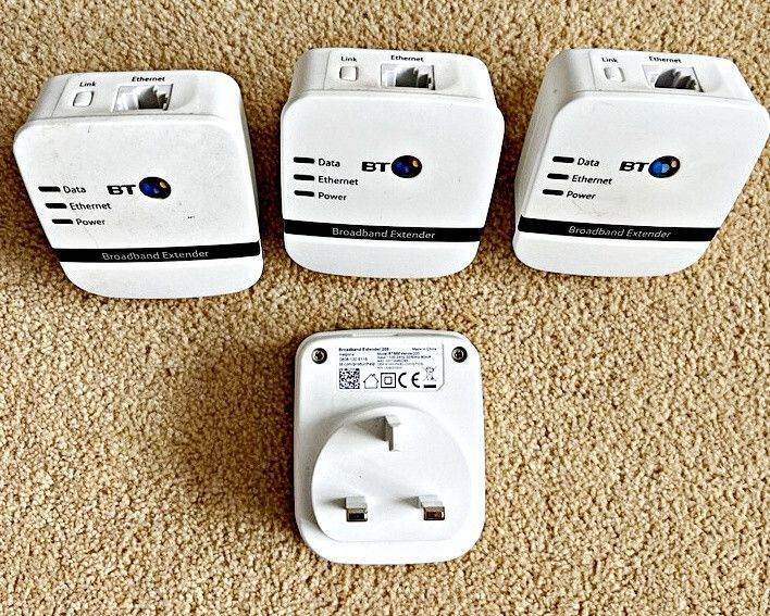 The 4 No. BT Broadband Extenders 200 are designed to boost your home network's performance by amplifying the signal from your router. With a maximum LAN data rate of 200 Mbps, these white extenders from BT are ideal for ensuring a reliable and fast internet connection throughout your home. Easy to set up and use, they provide a hassle-free solution for improving connectivity in areas where the signal strength may be weak. Perfect for households with multiple devices requiring a strong internet connection.