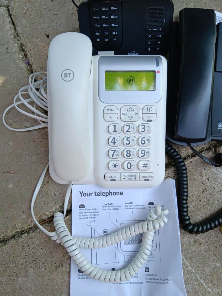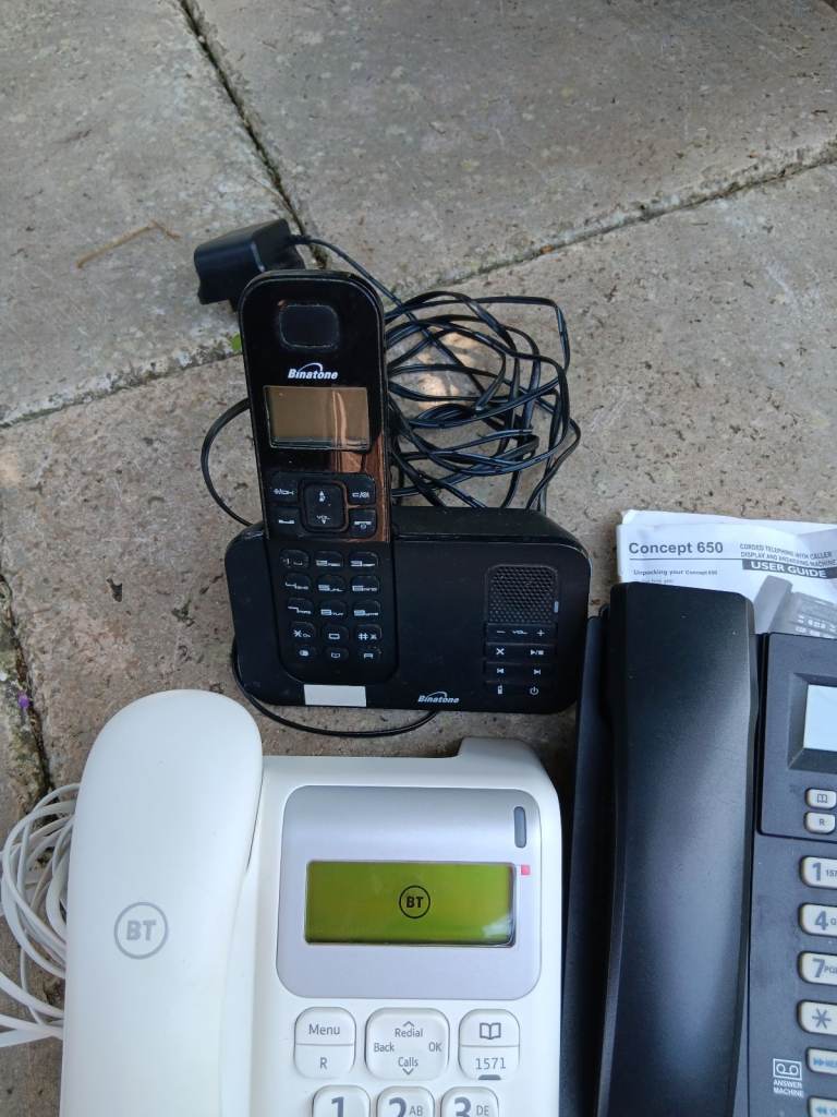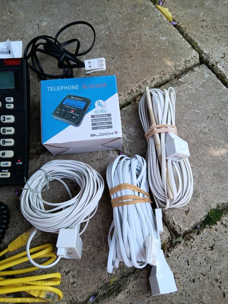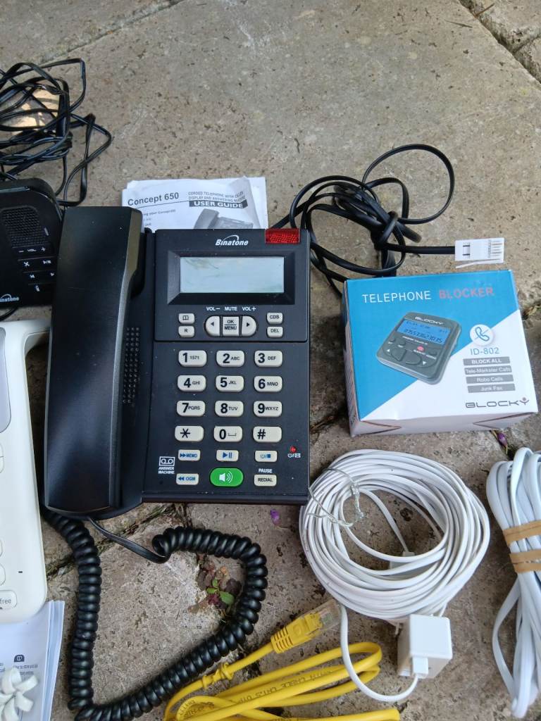 Assorted telephones & leads as pictured.. ix BT big button , 1x binatone cordless & 1x binatone with answering machine. 1x call blocker 3x extension leads ( min 15mts ) to my knowledge these all work , but selling as a pack with no guarantees.. collect from Beccles