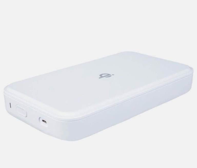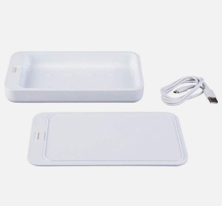 Sterilises phones, keys, jewellery and other items using UV light
