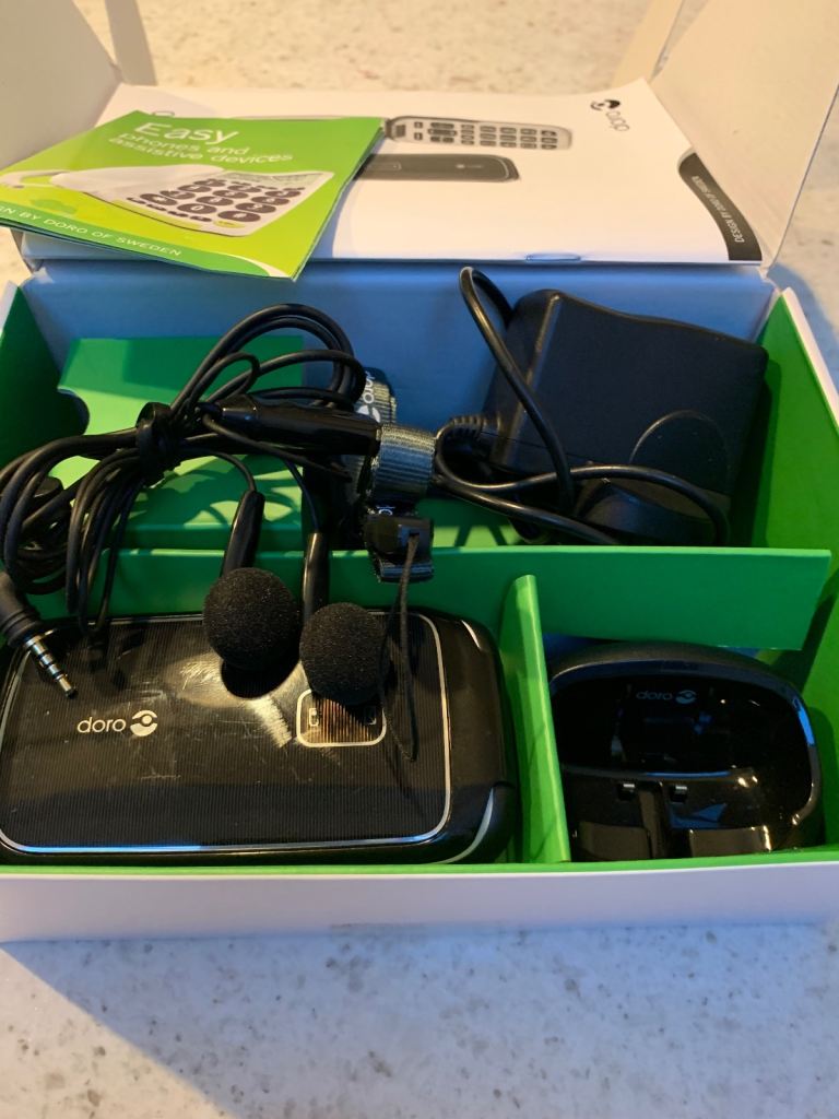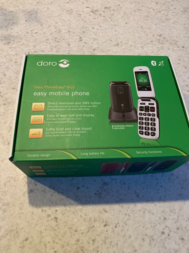 Flip phone big numbers ideal for elderly no gimmicks straight forward phone boxed complete with all accessories in excellent condition extra loud easy read text and display direct memory and SMS button