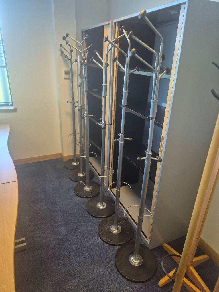 We have 6 x metal coat stands with black marble bases @ £15 each.