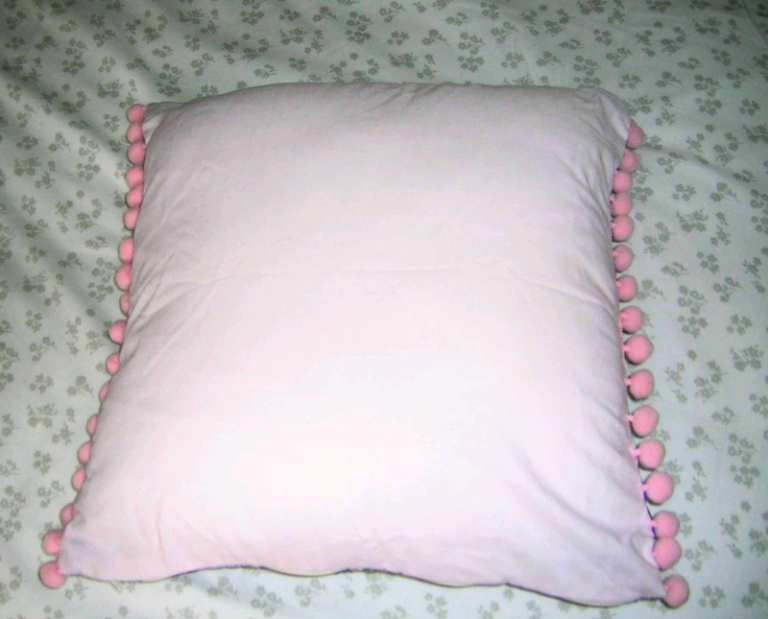See photos showing colour, style and sizing details, these are NEW professionally crafted zipped cushions with coloured large pom poms down 2 sides