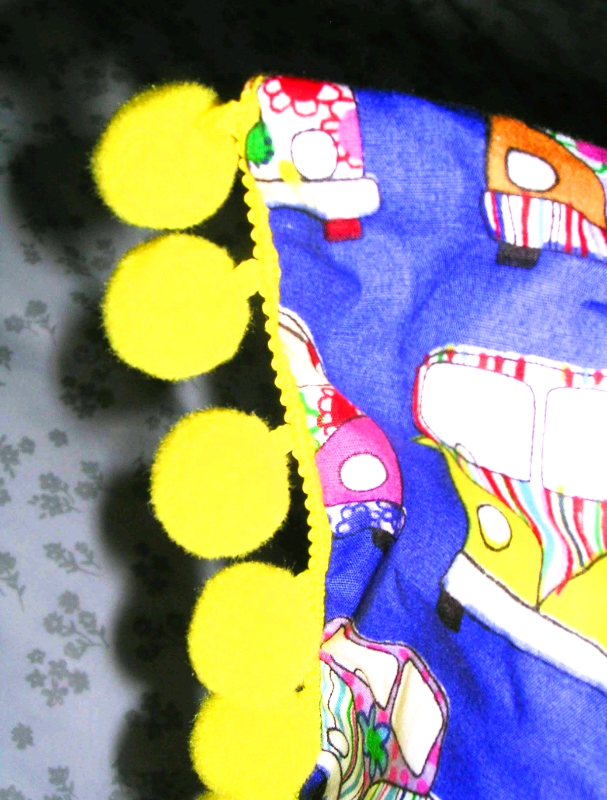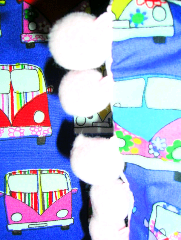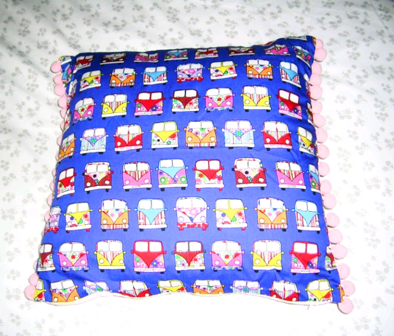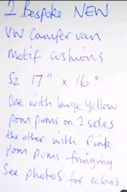 2 Bespoke NEW VW Campervan 17 inch×16 inch pom pom fringe cushions (Peterlee)