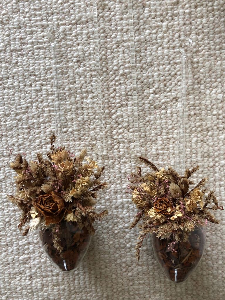 2 Decorative Ornamental Dried Flowers in a Glass Ball which can be hung on the wall (2)
