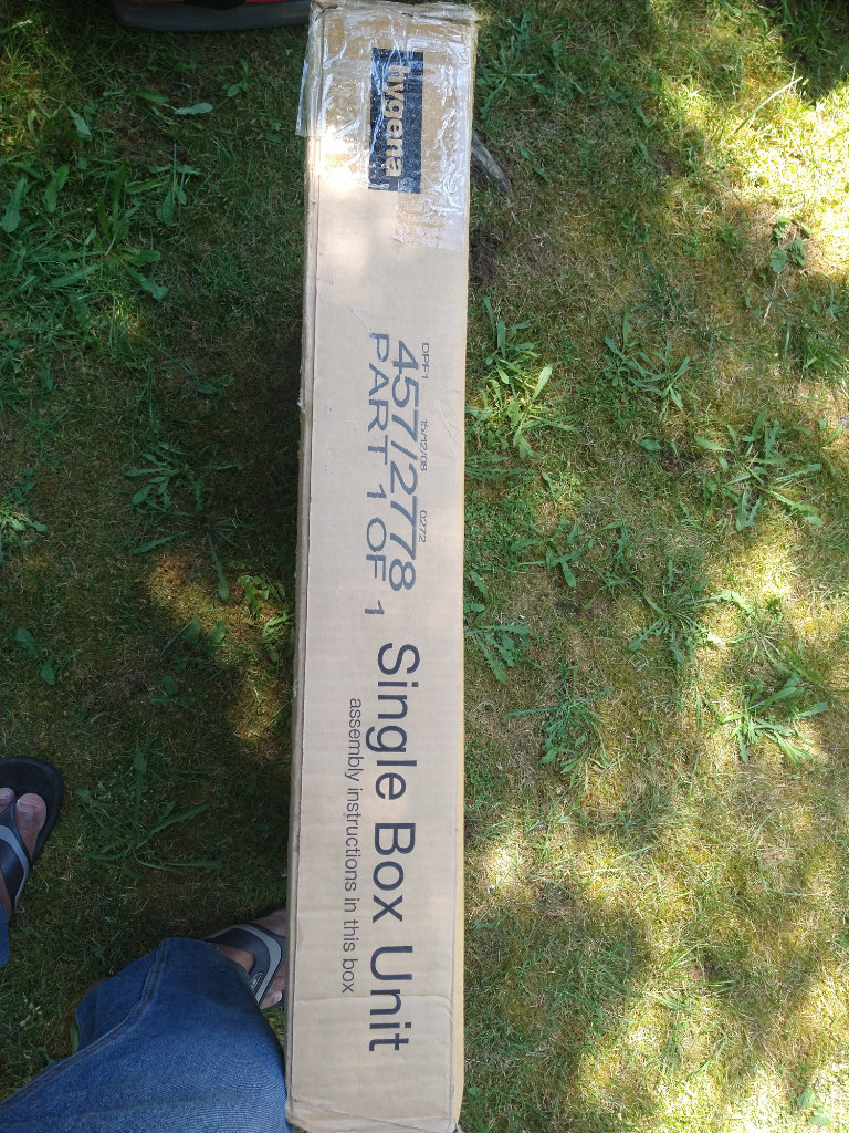 Unopened in box 2 draw filing unit , bought and never used, box shows some wear and tear