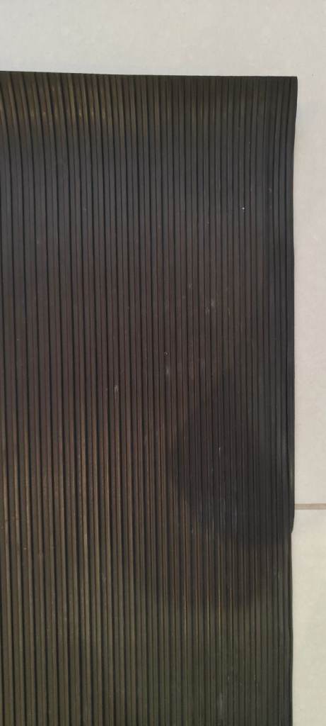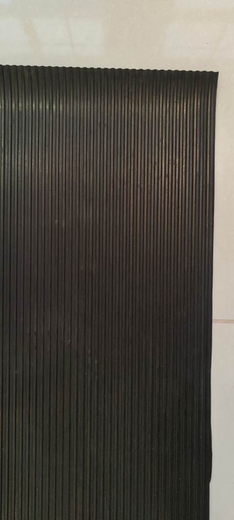 Extremely durable rubber material which has a corrugated ribbed pattern on one side and a flat finish to the reverse.