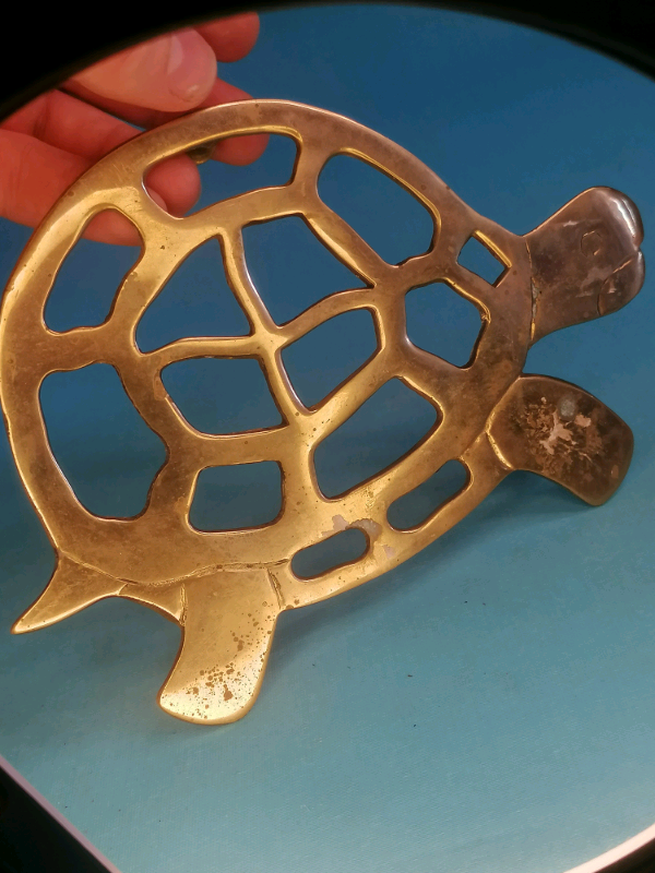 6,5-inch Vintage brass turtle trivet.