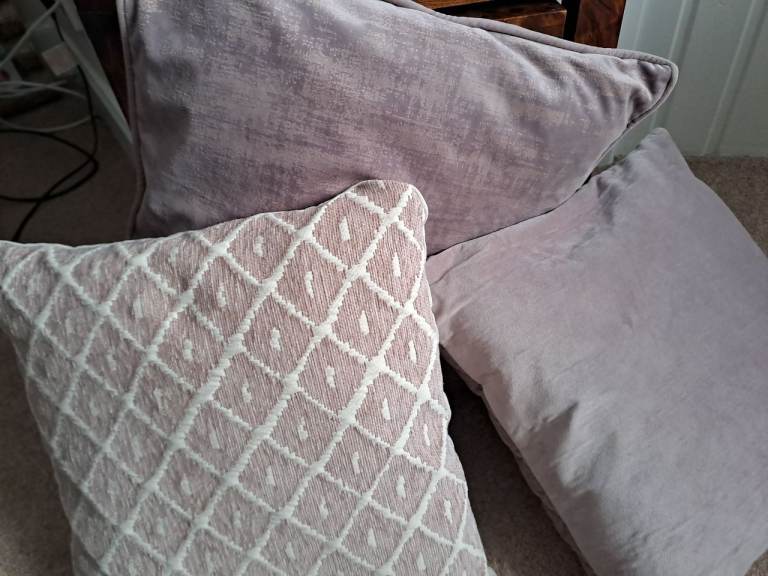 6 scatter cushions in a dusty pink/smokey mauve shade. 4 velvery velour fabric and 2 textured. Very good condition. Pick-up Ayr KA8. ( Prestwick side of Ayr)