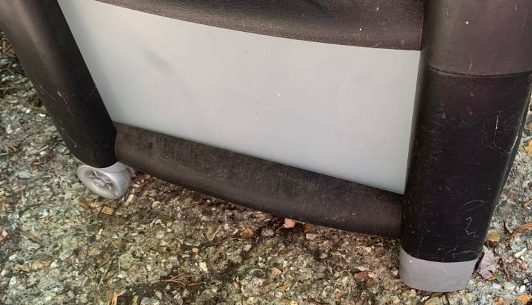 Has 2 wheels, one on each back corner for easier manoeuvrability