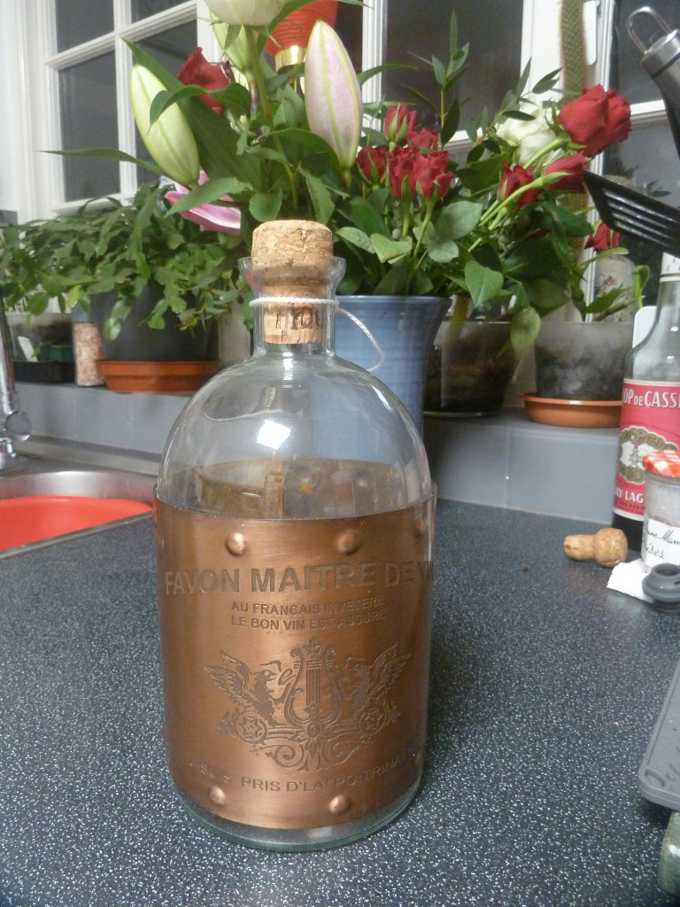 A decorative bottle in good condition, ideal for the kitchen or bath room display.