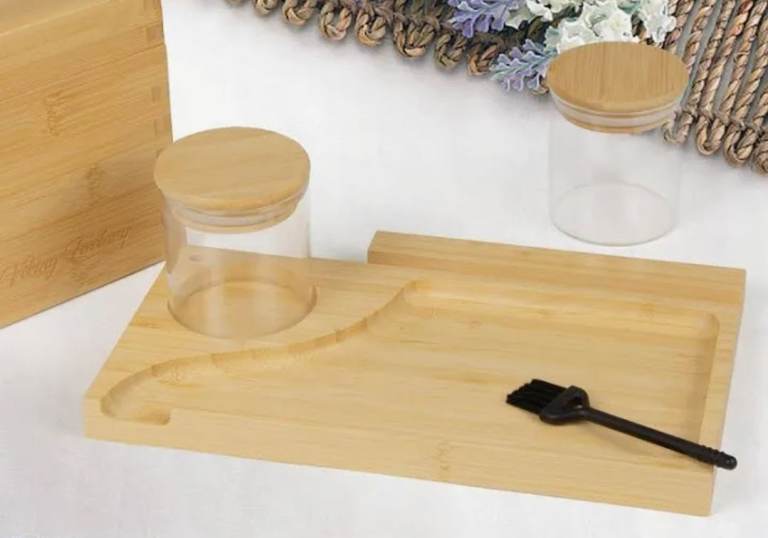 A new bamboo storage box with removable divider and Secure Combination Lock .