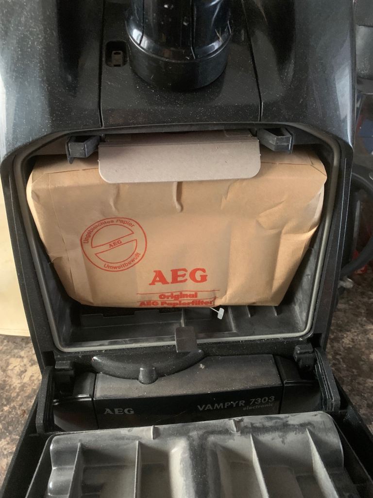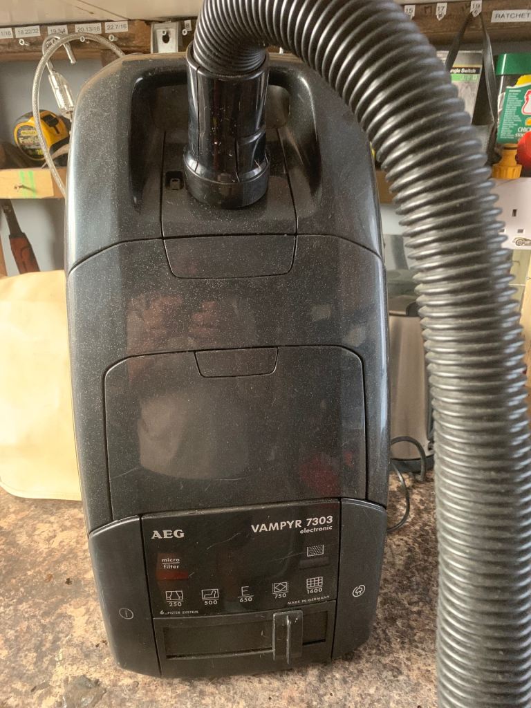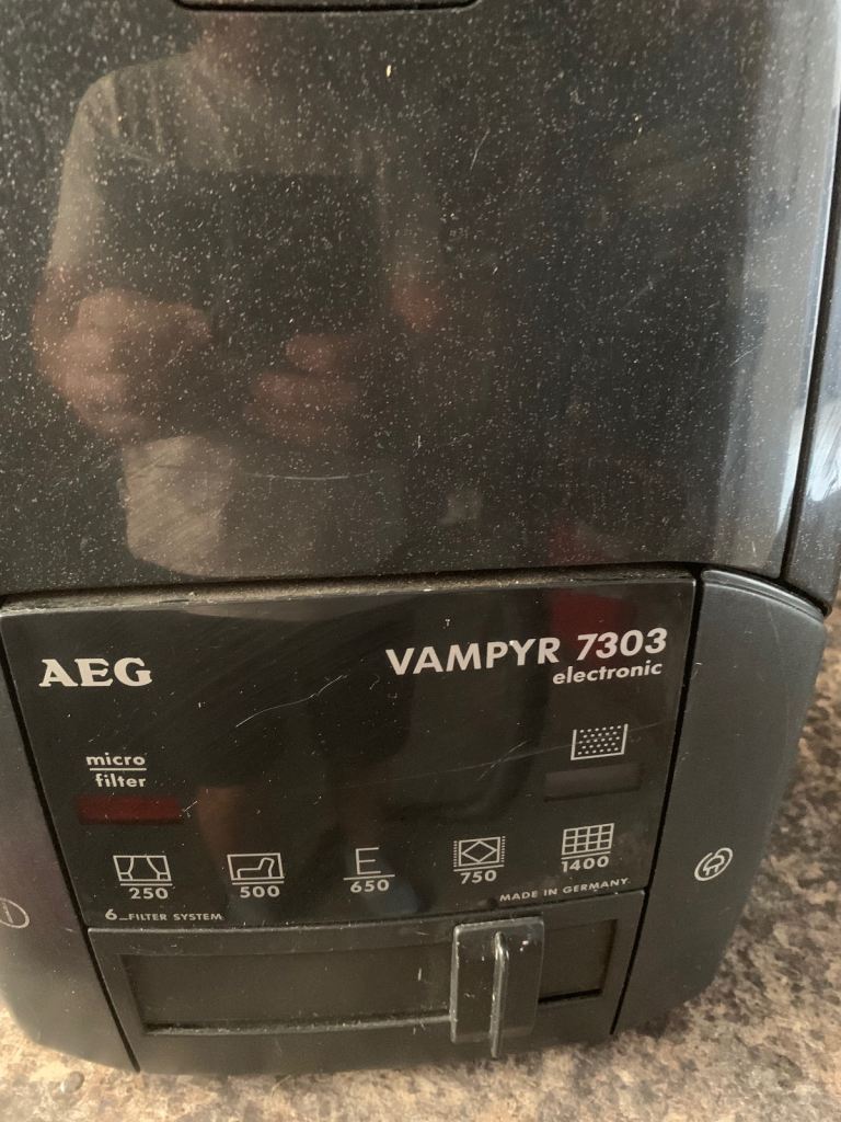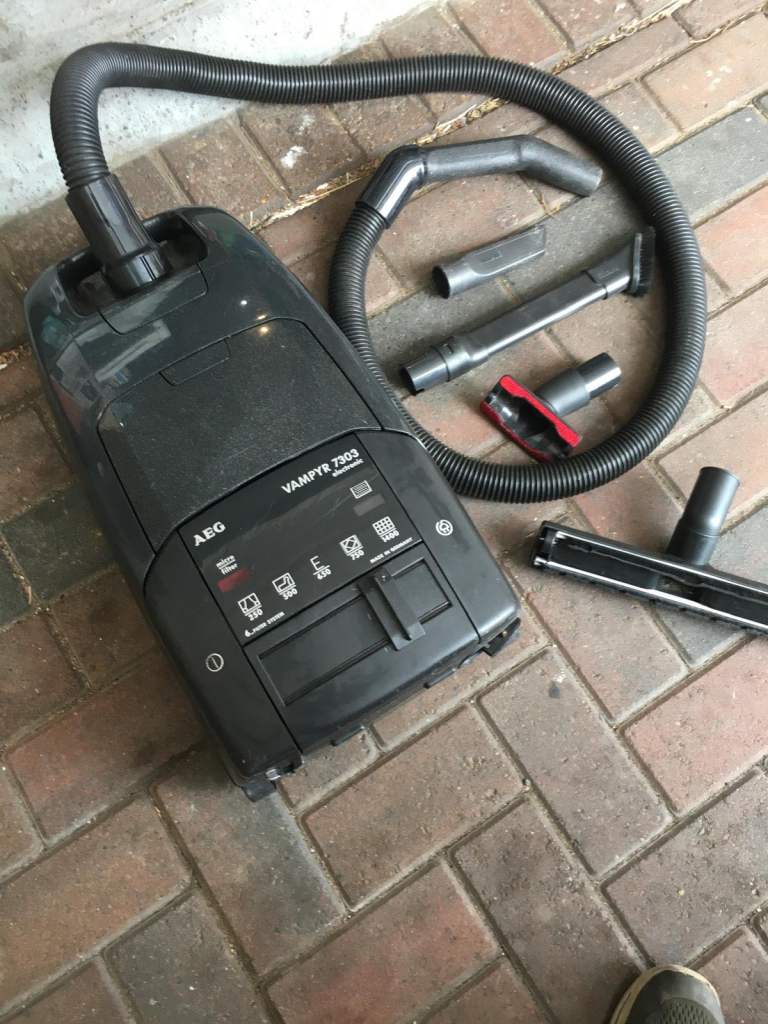 A AEG floor vacuum with attachments but it’s missing the long vacuum extension pole