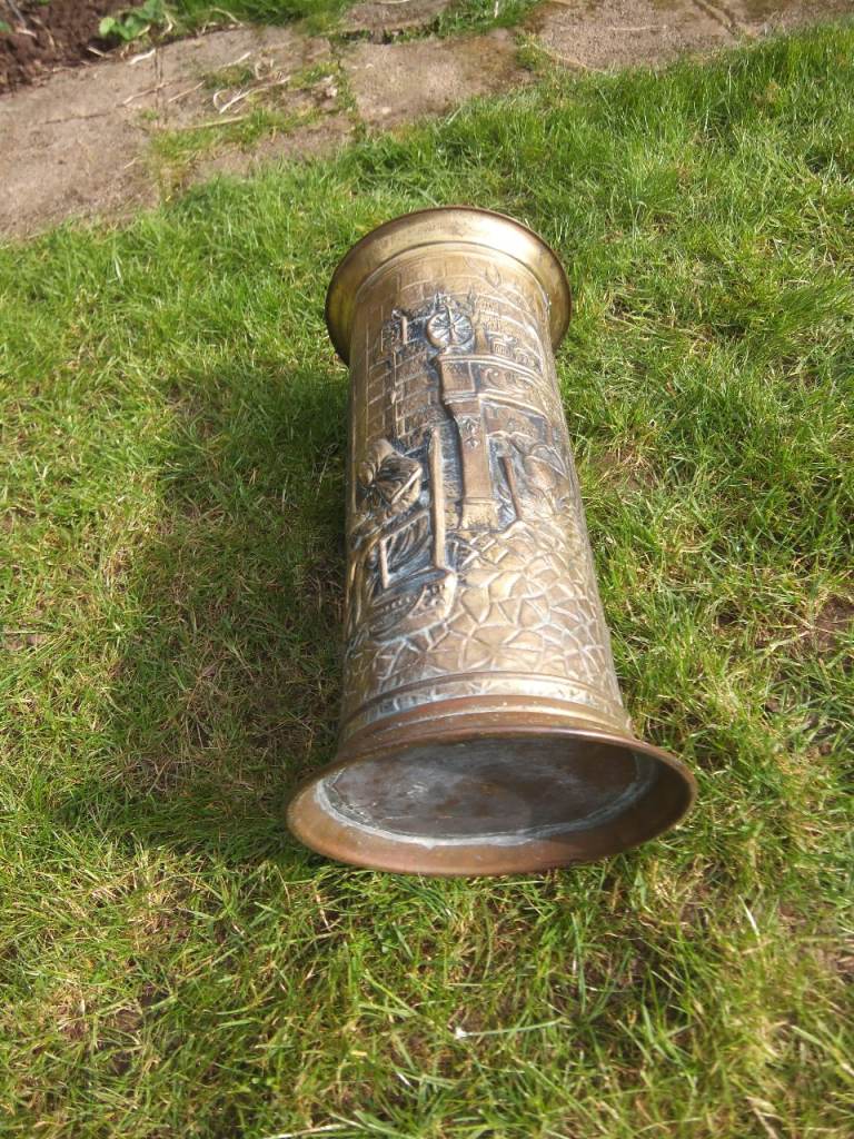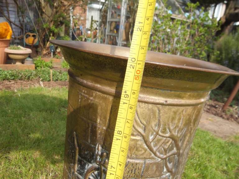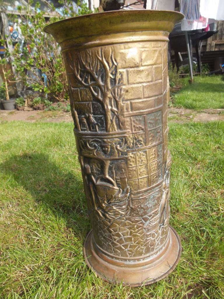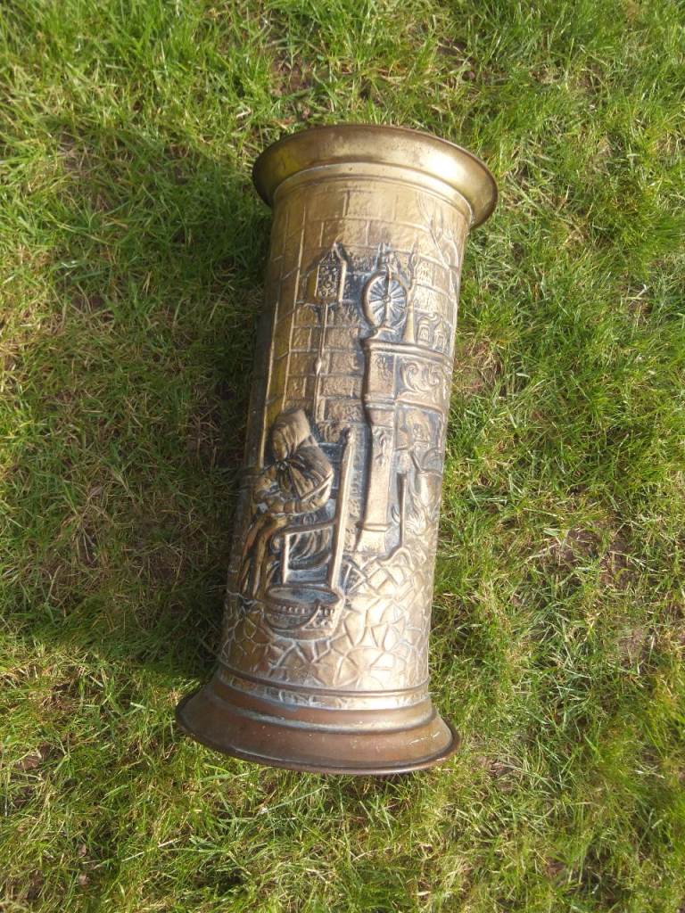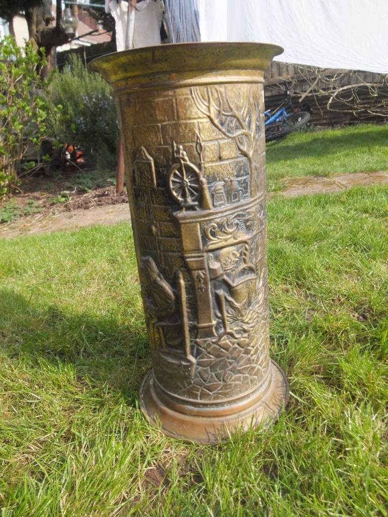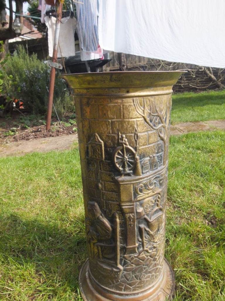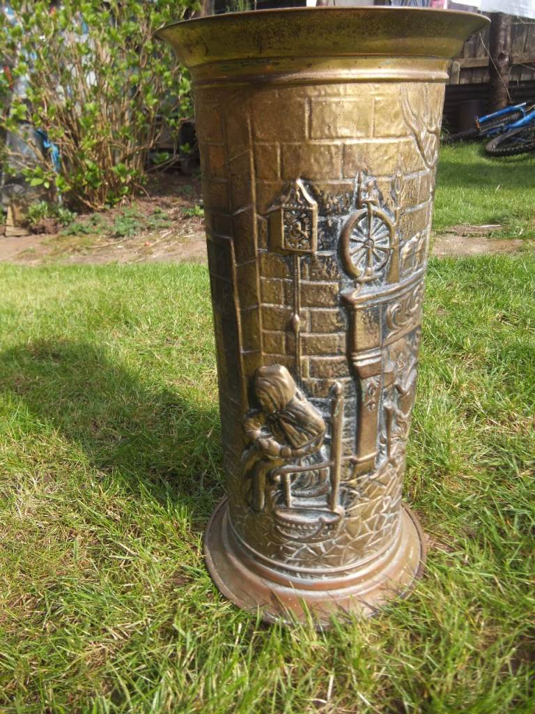 Antique Solid Embossed Brass Umbrella Dutch Interior Scene