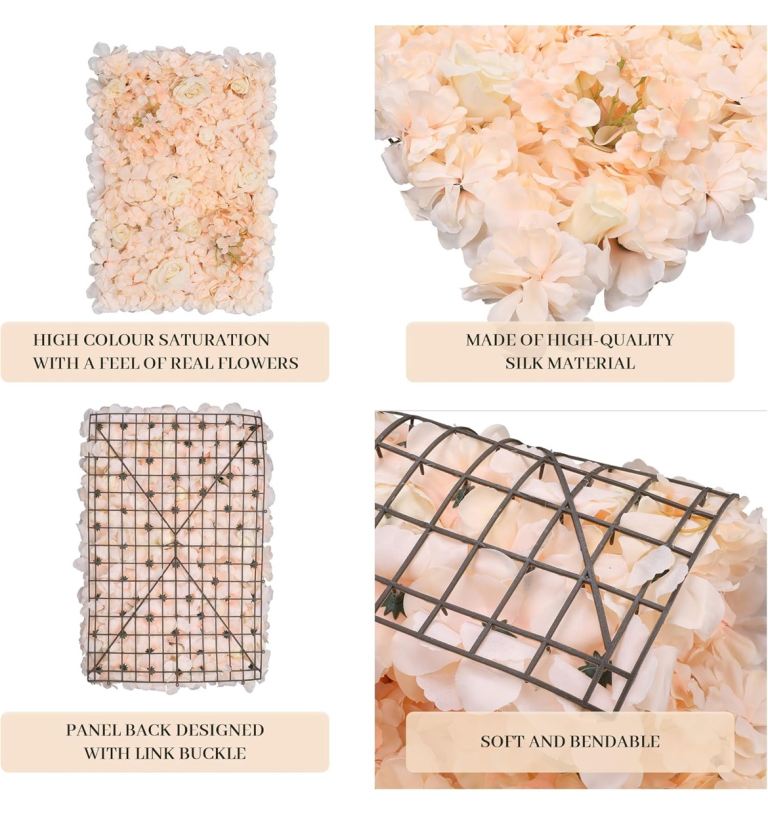 Condition is New not used. Artificial Flowers Wall Panels DIY Fake Flower Wall Silk Flower Romantic Floral Backdrop for Wedding Birthday Party Home Decoration, 60cm x 40cm, Peach & Ivory, 12pcs