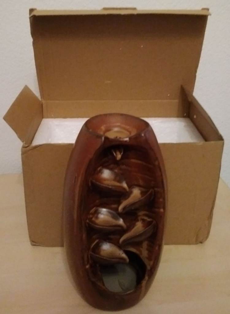 Brown Backflow Incense Burner. Height: 20cm. Width: 10cm.