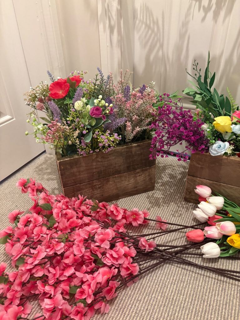 10 x Bespoke made flower boxes and lots of artificial flowers.