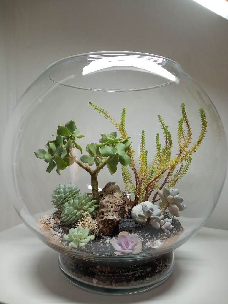 BIG SALE Beautiful Large Succulent Arrangement – Glass Globe 33cm