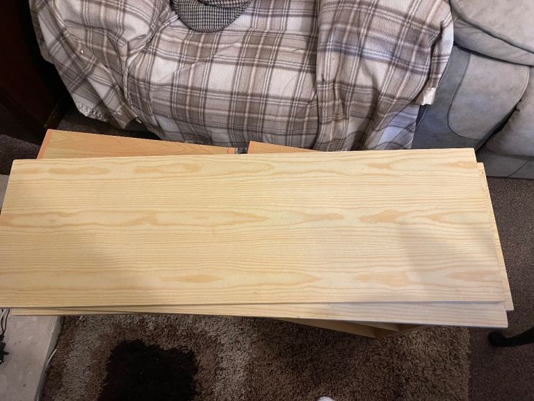 For sale two small pine effect bookshelves, two 3 ft long pine effect shelves all in good condition.