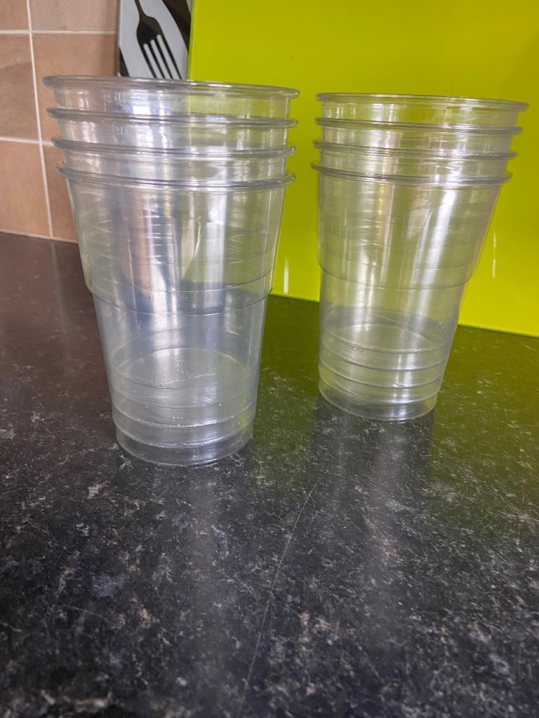 - 8 Plastic 1.25 Pint Glasses (Could Be Re-Used) - £1.20 @ £0.15 Each)