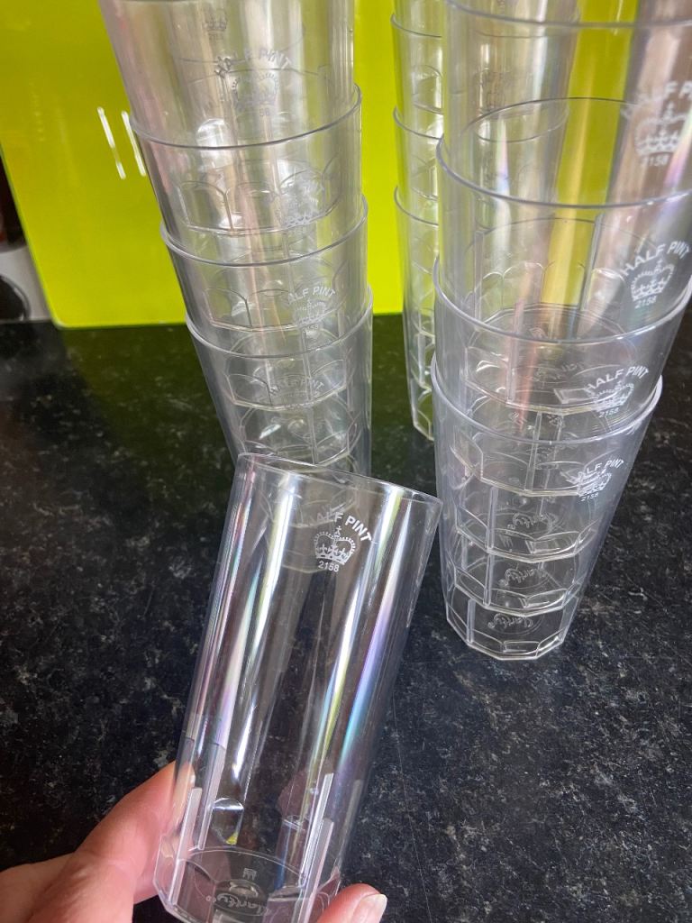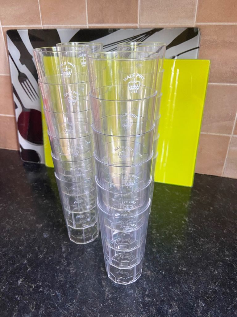 - 24 Reusable Acrylic 1/2 Pint Glasses - (£6.00 @ £0.25 Each)