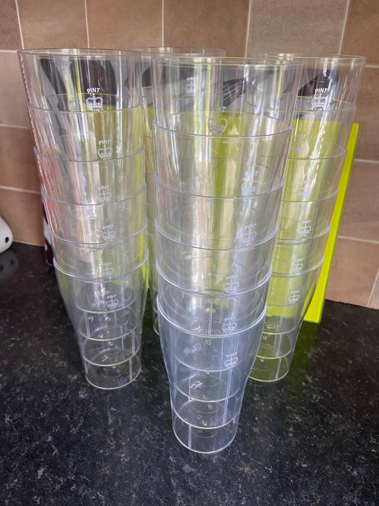 - 24 Reusable Hard Plastic 1.25 Pint Glasses - (£6.00 @ £0.25 Each)