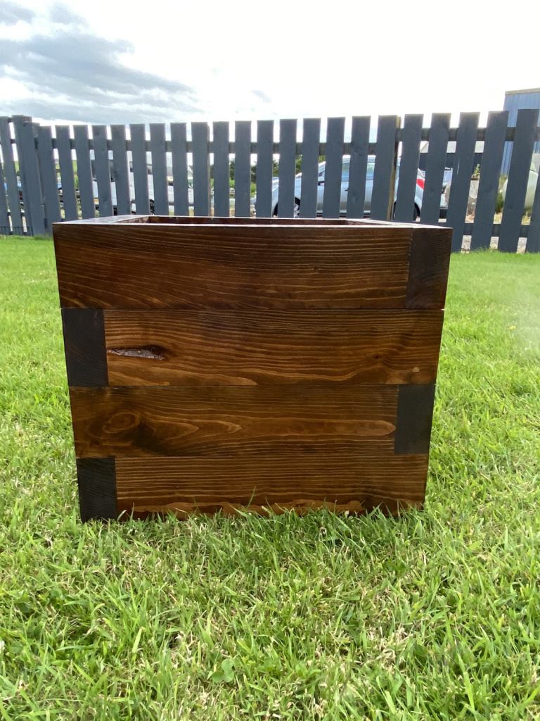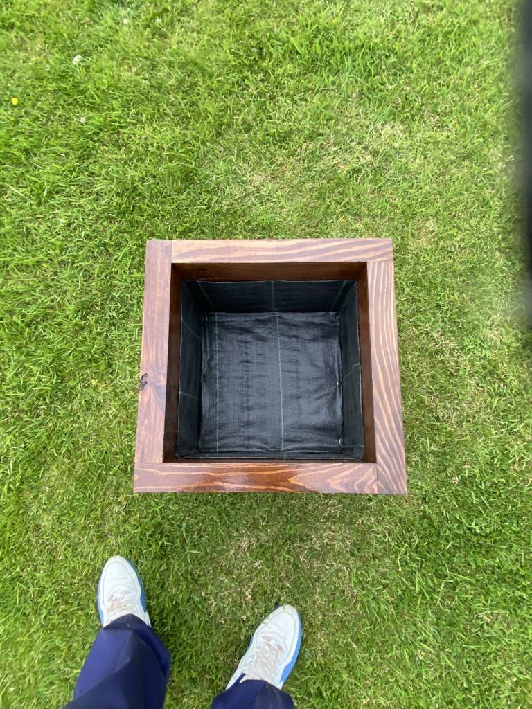 Handmade box planter made with treated wood, also treated with varnish for all weathers,