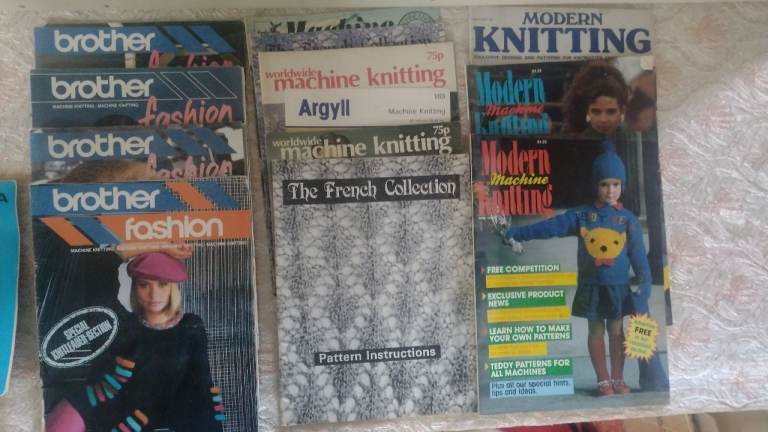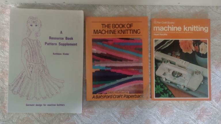 This is a punch card machine and all the punch cards are there plus extras and blanks with a hole punch too so you can make your own designs.There is the original instruction book and also a book with a machine knitters beginners course and 3 other machine knitting books and lots of magazines with patterns and tips.