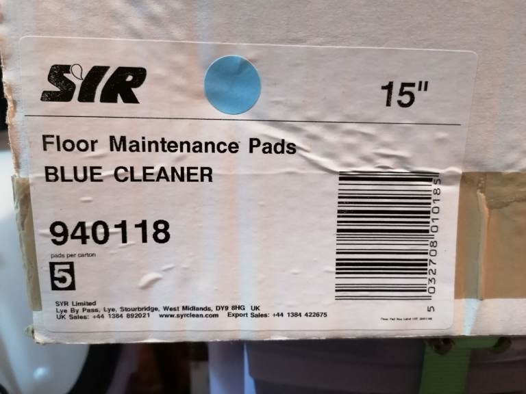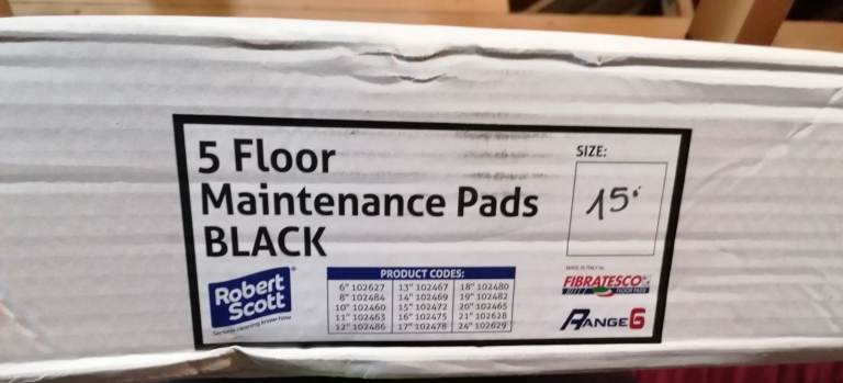 Green buff pads one box of five with Removable Precut Centre Hole. £10.00 (15") Floor Cleaning Buffer Pads, Pack of 5, Green Super Scrub, Compatible with Wood, Concrete, Ceramic, Floor Pad 4.6 4.6 out of 5 stars 7 ratings | Amazon RRP £61.00