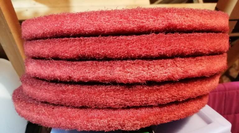 Red fifteen-inch buff pads FIFTEEN PADS with Removable Precut Centre Hole. in total £15.00 (15") Floor Cleaning Buffer Pads - Red Buffer, Pack of 5 4.6 4.6 out of 5 stars 7 ratings Search this page
