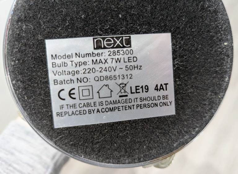 Both NEXT Lamps have the Brand/Information stickers still on the bottom and come with upgraded LED bulbs when bought last year, the Floor Lamp has a 8w LED Energy Efficient Bulb and the Table Lamp has a 6w LED Efficient Bulb both less than a year old.