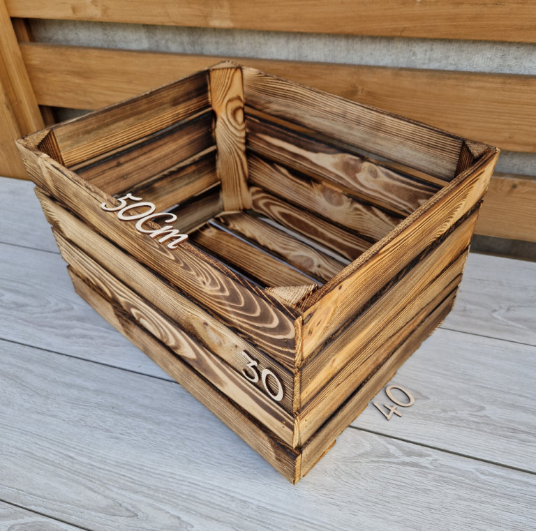 You can buy these smaller wooden crates in natural or burnt effect finish.
