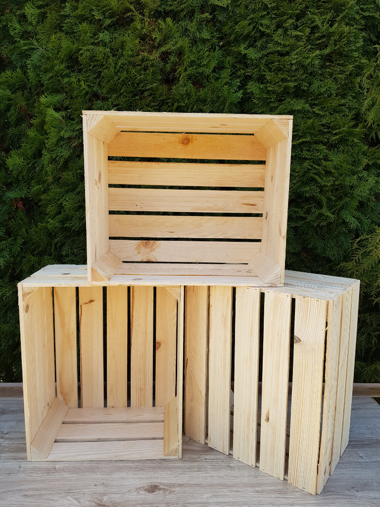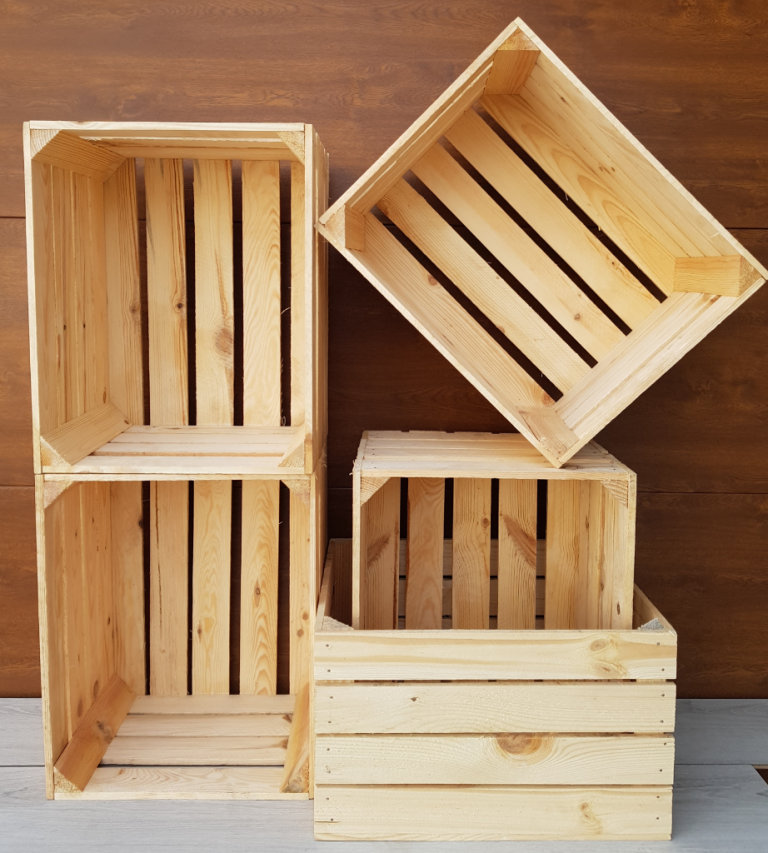 Our crates can be used as decorative elements in shop windows and also fit into the living room as book shelves. You can also store fruit or vegetables in them. Our products are solid, clean and ready to use.