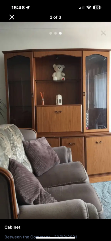 Solid wood side cabinet, come in two piseses, light in the drinks cabinet and top part of cabinet. only £45 ono