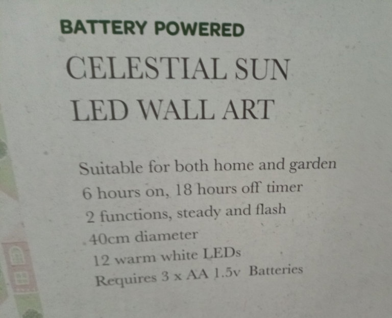 Celestial sun garden wall art-LED lights-New & in original box