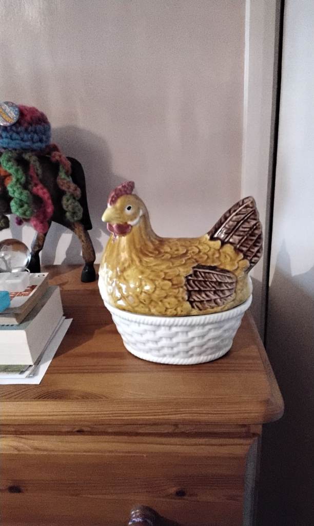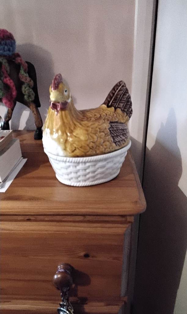 Lovely ceramic chicken egg holder. Also nice as an ornament. You are welcome to come and see it no obligation. £9
