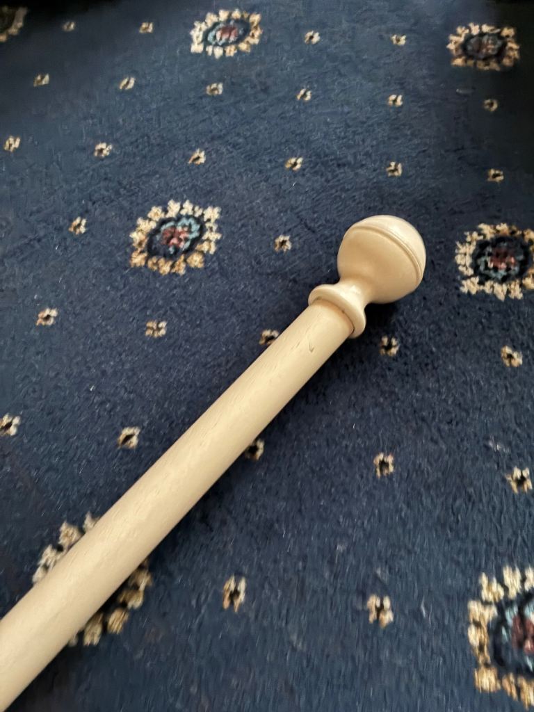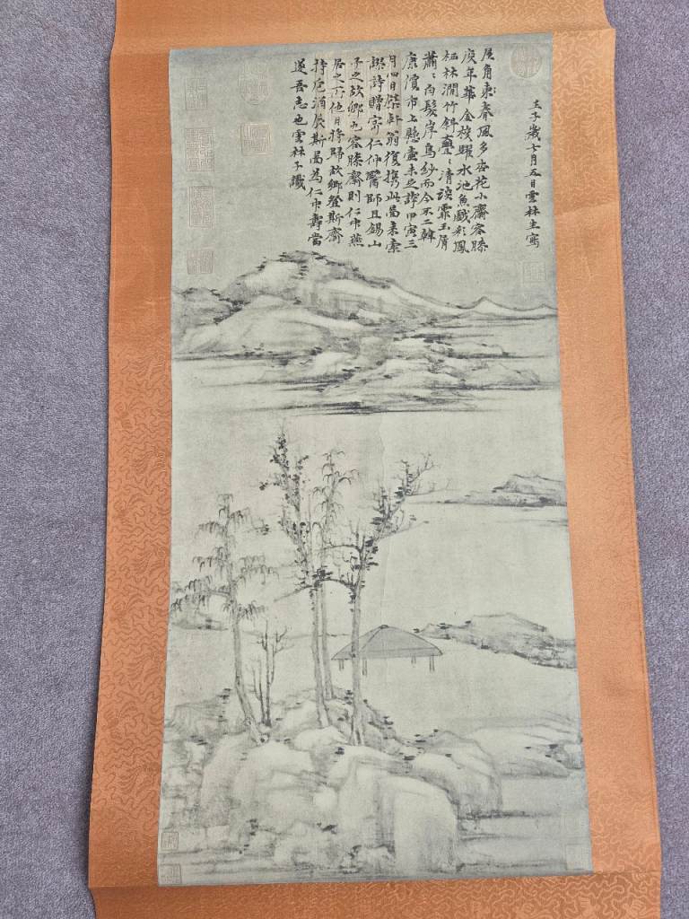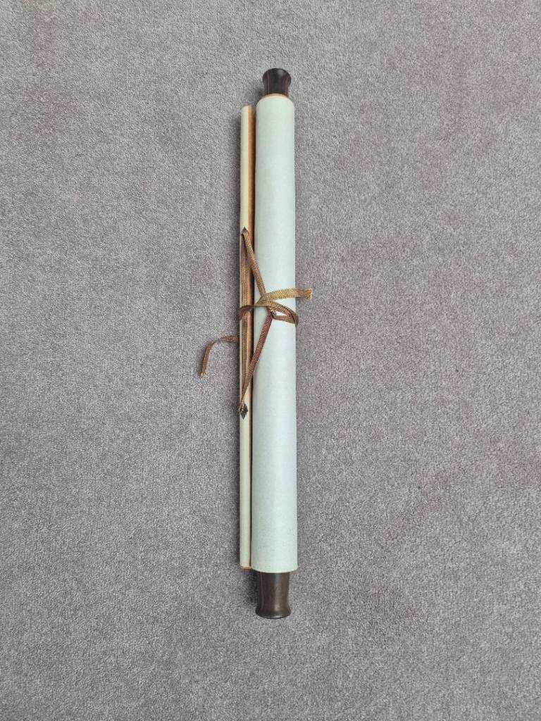 Wall Hanging with Chinese image and inscription. The hanging is 170cm by 47cm (the wooden baton is 54cm wide)