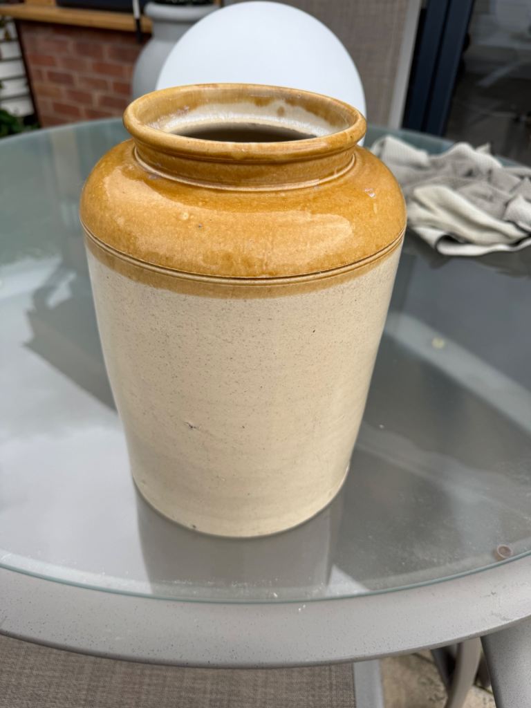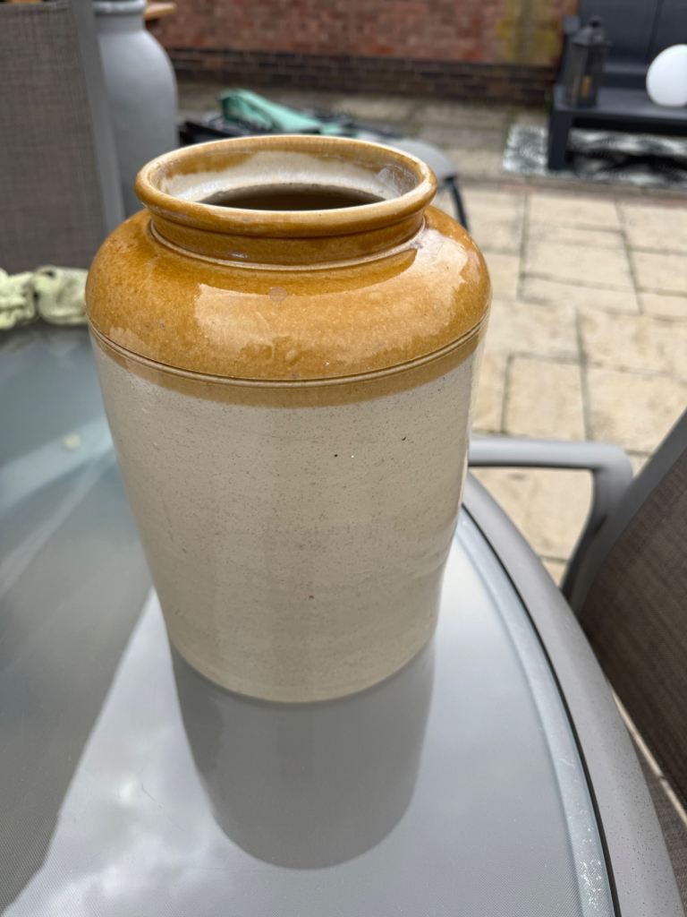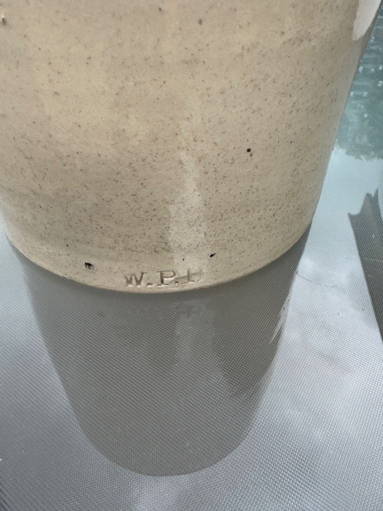 I have for sale an old earthenwear kitchen jar it is two tone glazedstamped WPH it is 19 cm in diameter and 27 cm tall in good condition