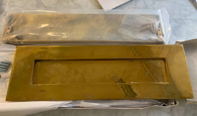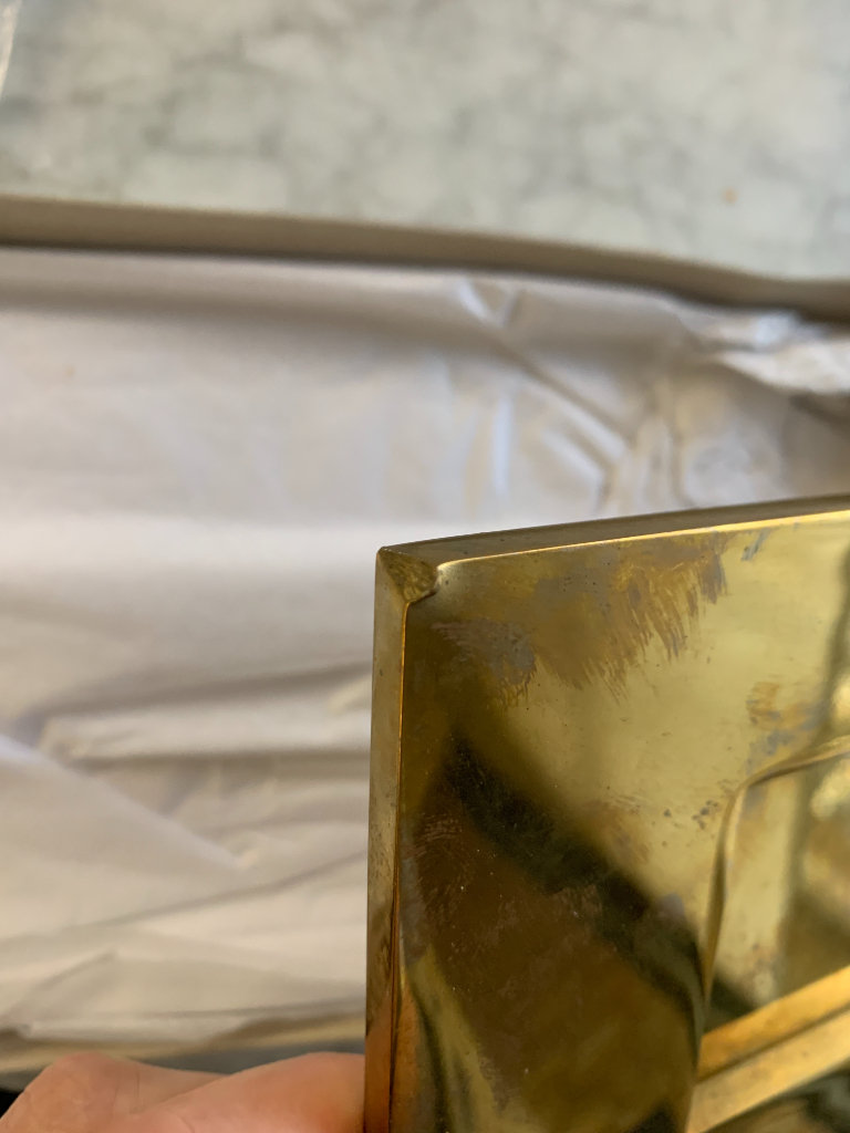 Small damage to the top left corner of the external plate - please see picture. Solid brass so could be filed/hammered down