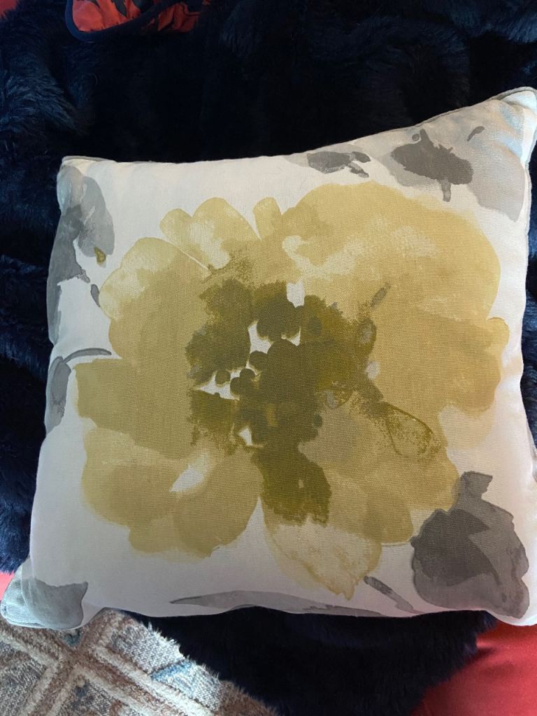 Washable cushion covers and cushions, white/grey/ yellow x2