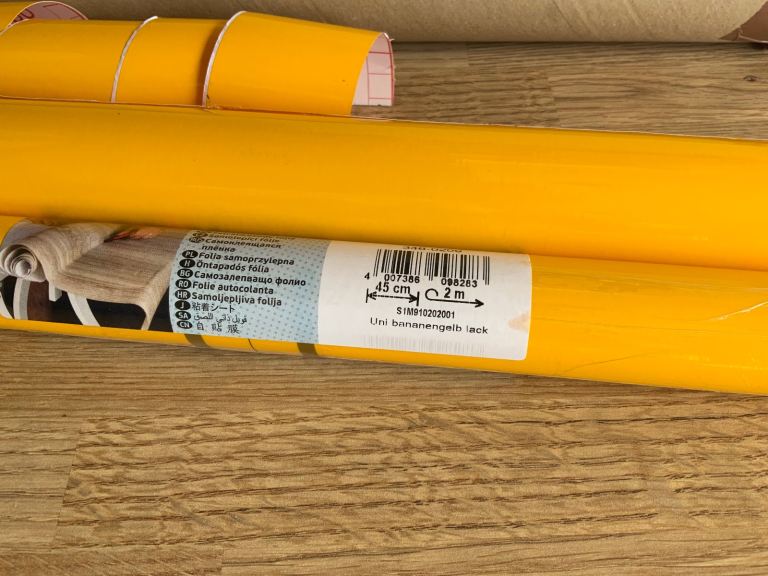 d-c-fix glossy banana yellow sticky back plastic-self adhesive vinyl film wrap.